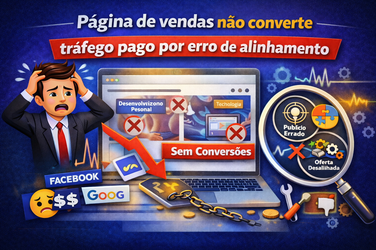 Página de vendas não converte tráfego pago por erro de alinhamento